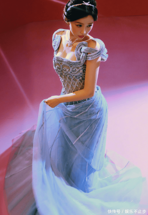 虞书欣以一袭雾霾蓝露肩纱裙惊艳登场。裙身上立体雕花与脖颈间的钻石流苏相映成趣,在镁光灯下折射出梦幻光泽。后台花絮里,她将长发挽成慵懒的公主髻,蜜桃色腮红衬得肌肤吹弹可破,眼尾点缀的碎钻更添灵动,活脱脱童话里走出的在逃公主。